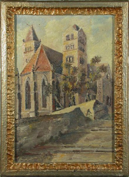 Blick auf die Apsis einer zweitürmigen, gotischen Kirche.
