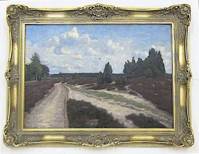 | Heathland, an Impressionist landscape with a country road running through shrubs and trees | |