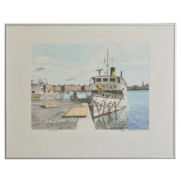 Stockholm färg II - Wästan. Stockholms, Nybrokajen med förtöjd "Wästan".
