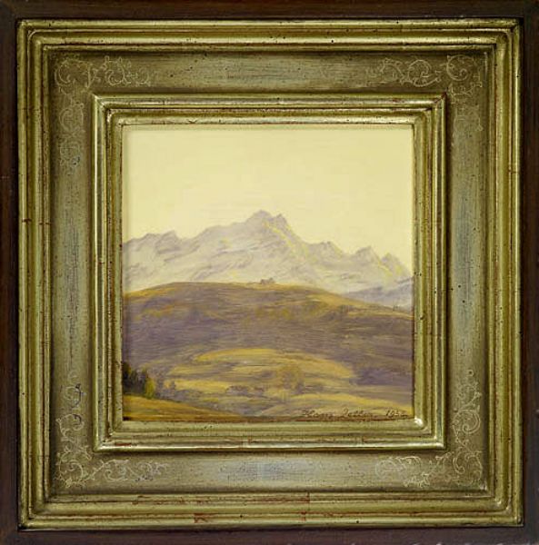 Winterabend bei Teufen mit Blick zum Säntis. 1956.