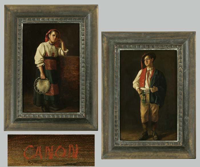 Pendant "Mädchen mit Tamburin" "Junger Bursche in Tracht"