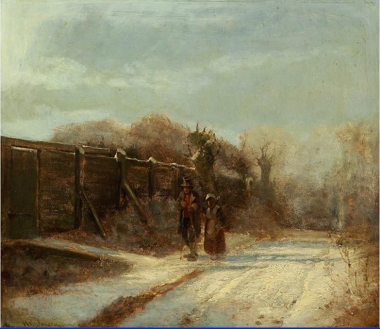 : Vintry landscape with couple on a gravel road