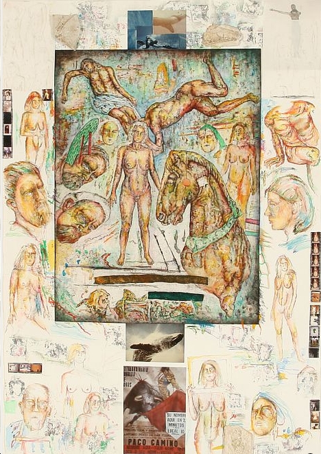 Oil on paper with collage