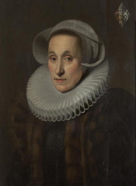 Portrait of a lady, with coat-of-arms (upper right)