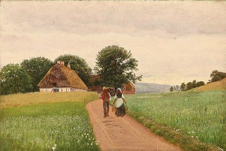 Danish summer landscape with two farmers.