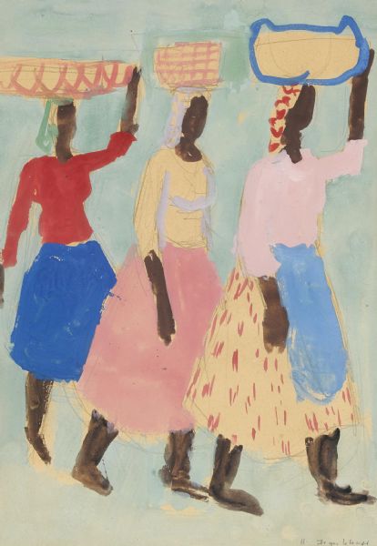Drei Frauen mit Körben auf ihren Köpfen.