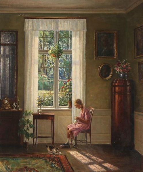 Interior with a knitting girl