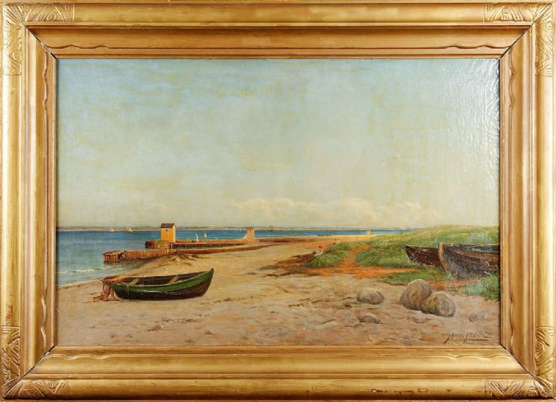 Strandparti vid Hornbaek, Vy mot Helsingborg