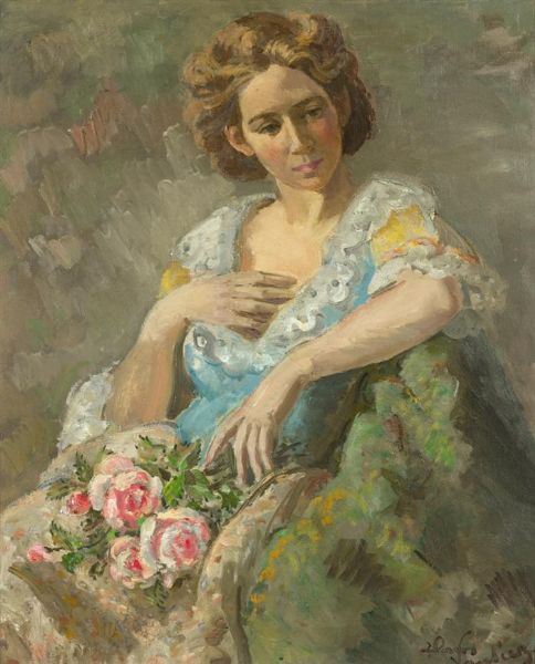 Mädchen mit Rosen (Portrait d'une femme avec des roses)