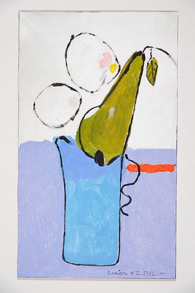 Blauer Krug und grüne Birne