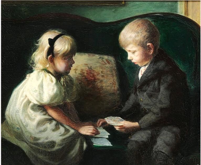| The silversmith and toy designer Kay Bojesen as a child playing cards with his sister Thyra | |