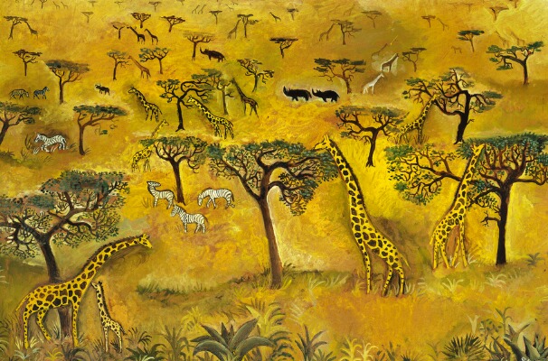 | Savannah Painting with Giraffes, Zebras and Rhinos. | |