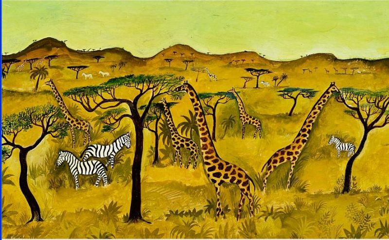 Savannah with giraffes and zebras