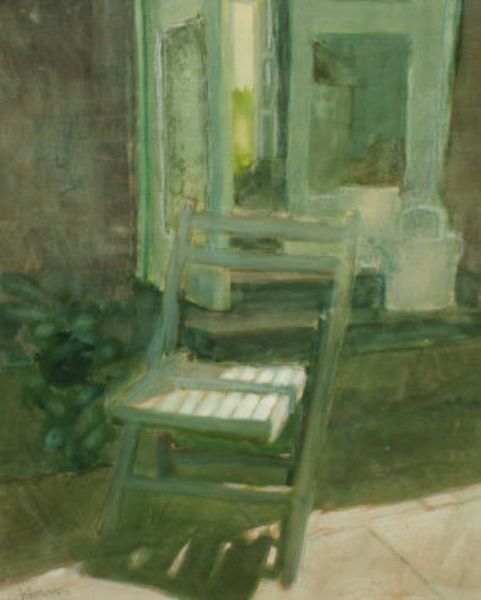 Deck chair by a window and a garden chair beneath a tree