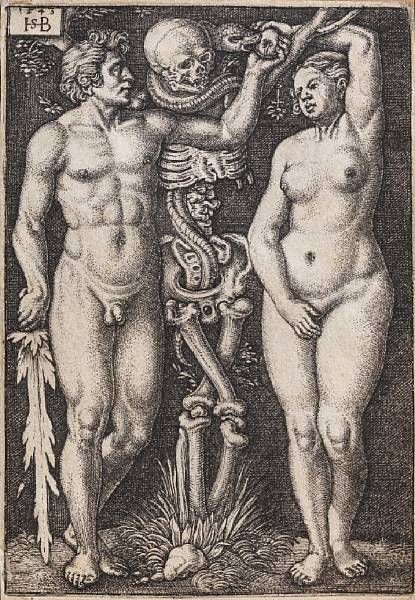 Adam and Eve with a skeleton (Bartsch 6, Hollstein P.7)