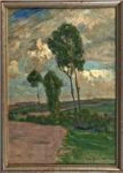 | Wiesbaden, Sanfte Hügellandschaft mit einsam stehenden Bäumen, die sich im Wind wiegen | |