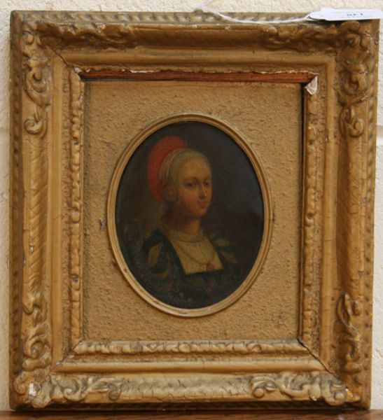 Oval Half Length Portrait of a Lady wearing Traditional Costume