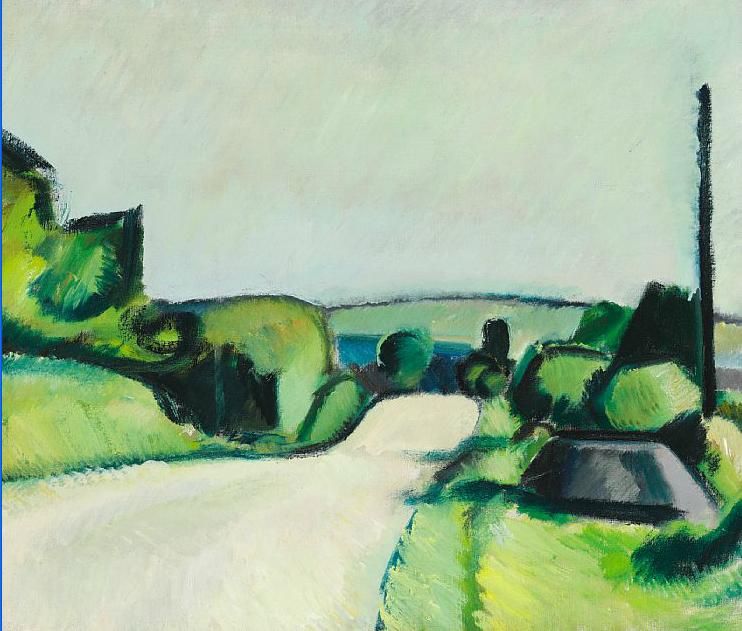 Landevej ved Faaborg, tilhøjre en Telefonpæl