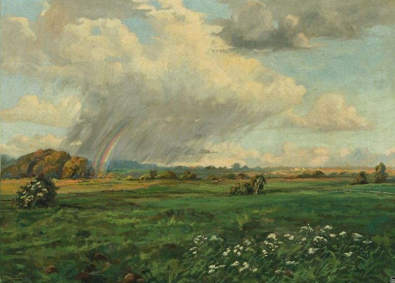 Landscape with rainbow and showery weather