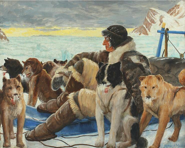 | Scenery from a glacier with Knud Rasmussen among his sled dogs | |