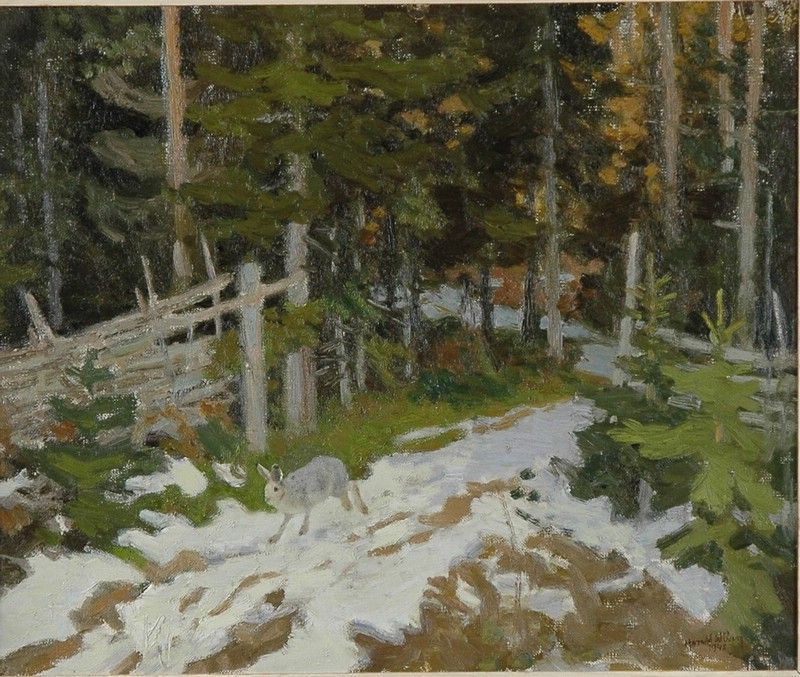 hare i vårvinterlandskap