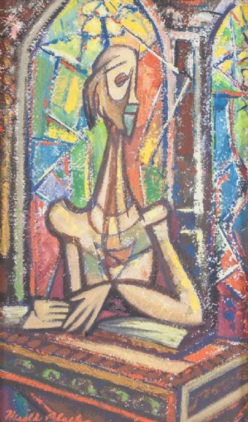 Male Figure Seated in a Church Interior