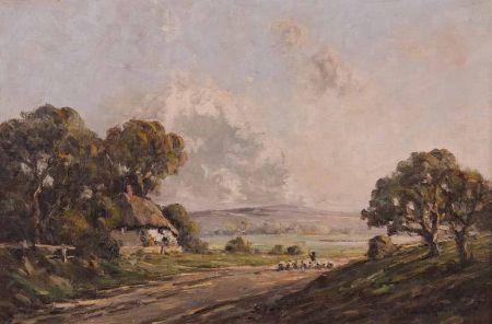 Country Landscape with Cottage, Shepherd and Sheep