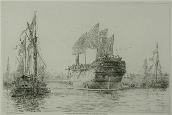| 'Building of H.M.S. Agamemnon, 64 guns, at buckler's Hard 1780...' | |