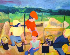 Figures working the land