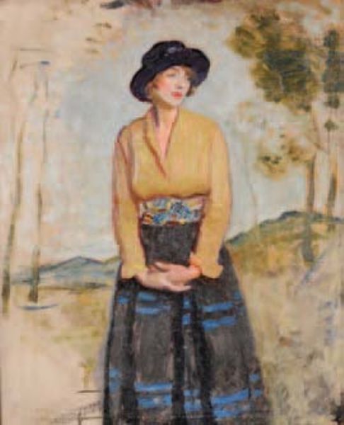 | Portrait of a lady, three-quarter length standing a landscape beyond | |