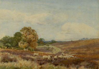 a moorland landscape with a flock of sheep