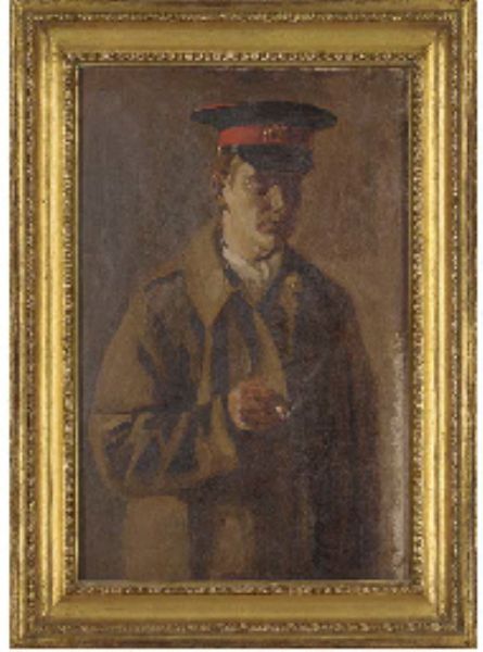 Self portrait, three-quarter-length, in uniform, smoking a cigarette