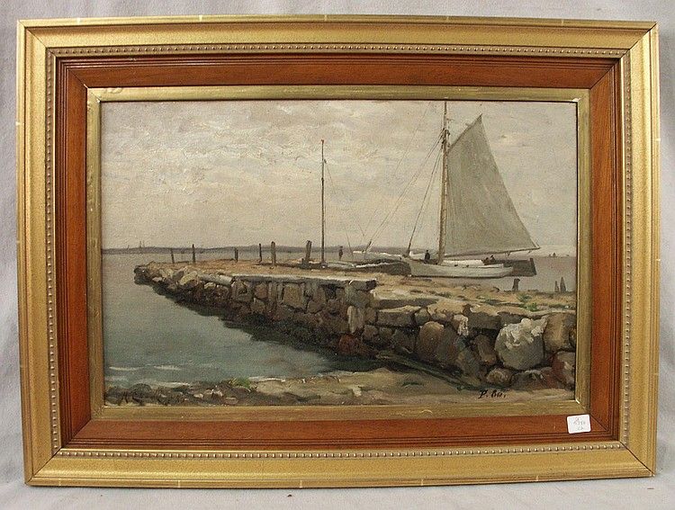 COASTAL VIEW WITH DOCK AND SAILBOAT