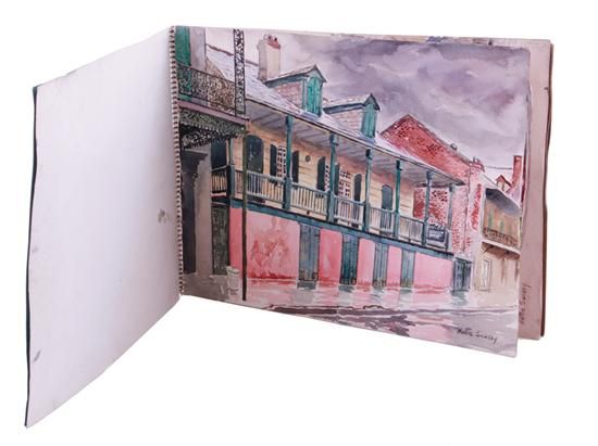 | THE ARTIST'S NEW ORLEANS SKETCHBOOK; containing three watercolors: MADAME JOHN'S LEGACY IN THE FRENCH QUARTER, ST. LOUIS CATHEDR | |