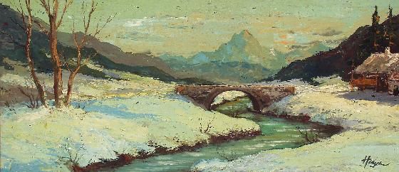 Winterliche Bachlandschaft in den Alpen (eventuell in Lichtenstein)