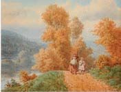 Figures by a lake; Mother and child returning from market