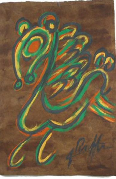 | Pastel tempera on heavy brown paper | |