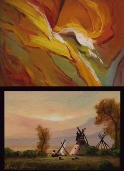 Two works: "Indian Camp" & "Abstract"