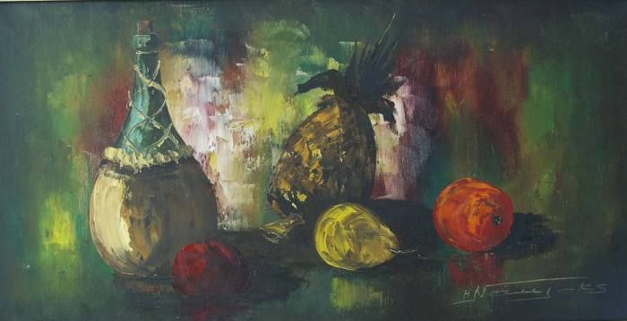 Obststilleben mit Weinflasche