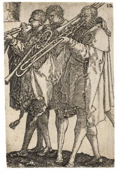 Drei Posaunenbläser (Blatt 12 aus dem Großen Zug der Hochzeitstänzer)