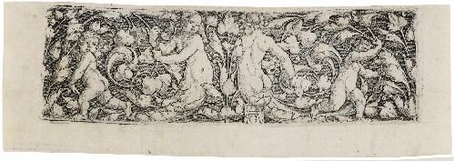 Ornament mit Blattranken, Tritonenpaar und zwei Kindern