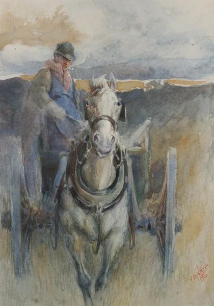 MAN WITH PIPE IN HORSE-DRAWN CART