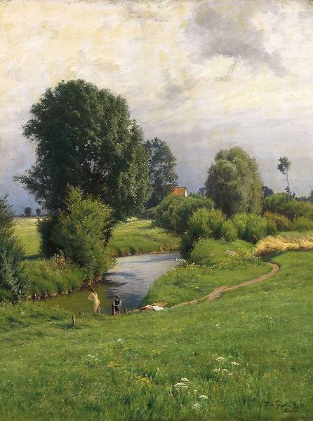| An der Groeben bei Dachau. Frühlingslandschaft mit Badender und kleinem Kind | |