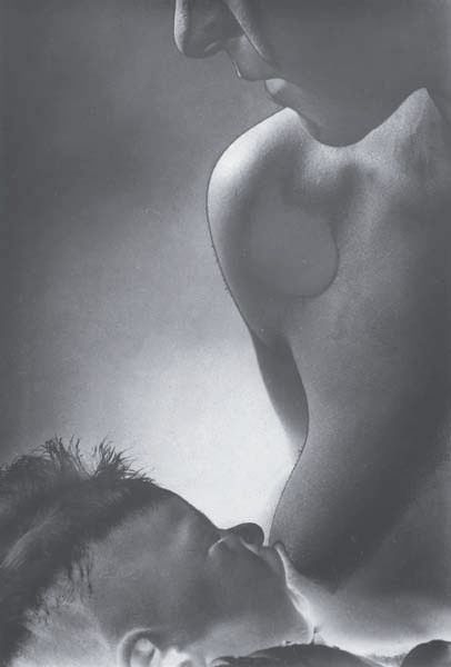 Untitled (mother feeding child, solarized)