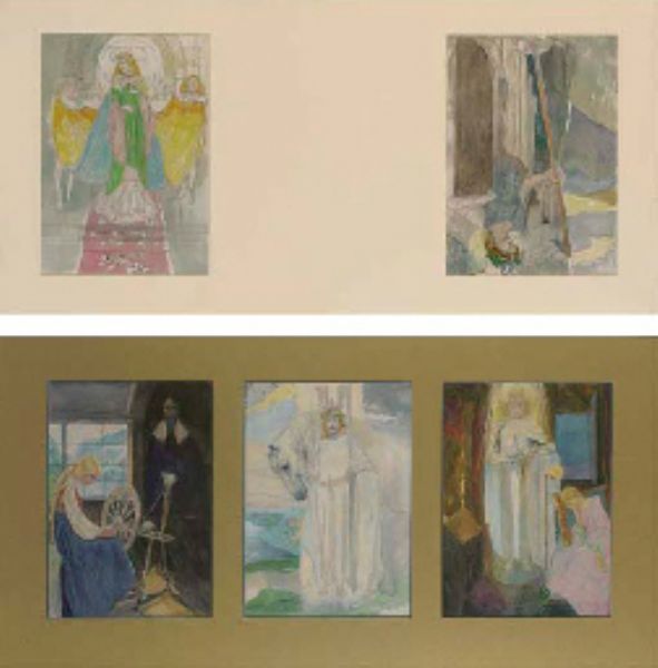 | Senta spinning; Parsifal; Lohengrin and Elsa (recto); Brünnhilde; Elsa on her way to the Cathedral (verso) | |