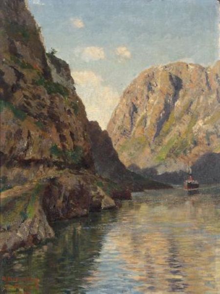 | Ansicht eines Fjordes mit Dampfschiff,"Gudvanger" | |