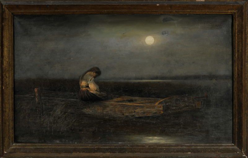 Schlafendes Mädchen im Ruderboot bei Nacht