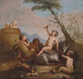 | The Infant Bacchus and putti, with a goat in a landscape | |
