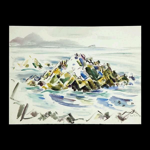 | Double sided painting: Bird Rock Pebble Beach with Coastal Cyprus on the verso | |