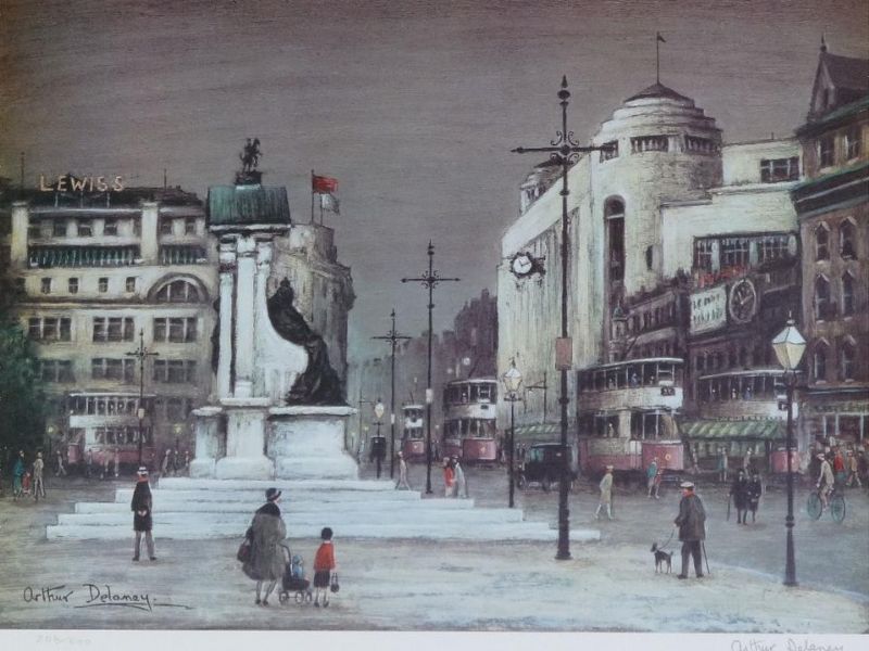 MANCHESTER STREET SCENE WITH TRAMS